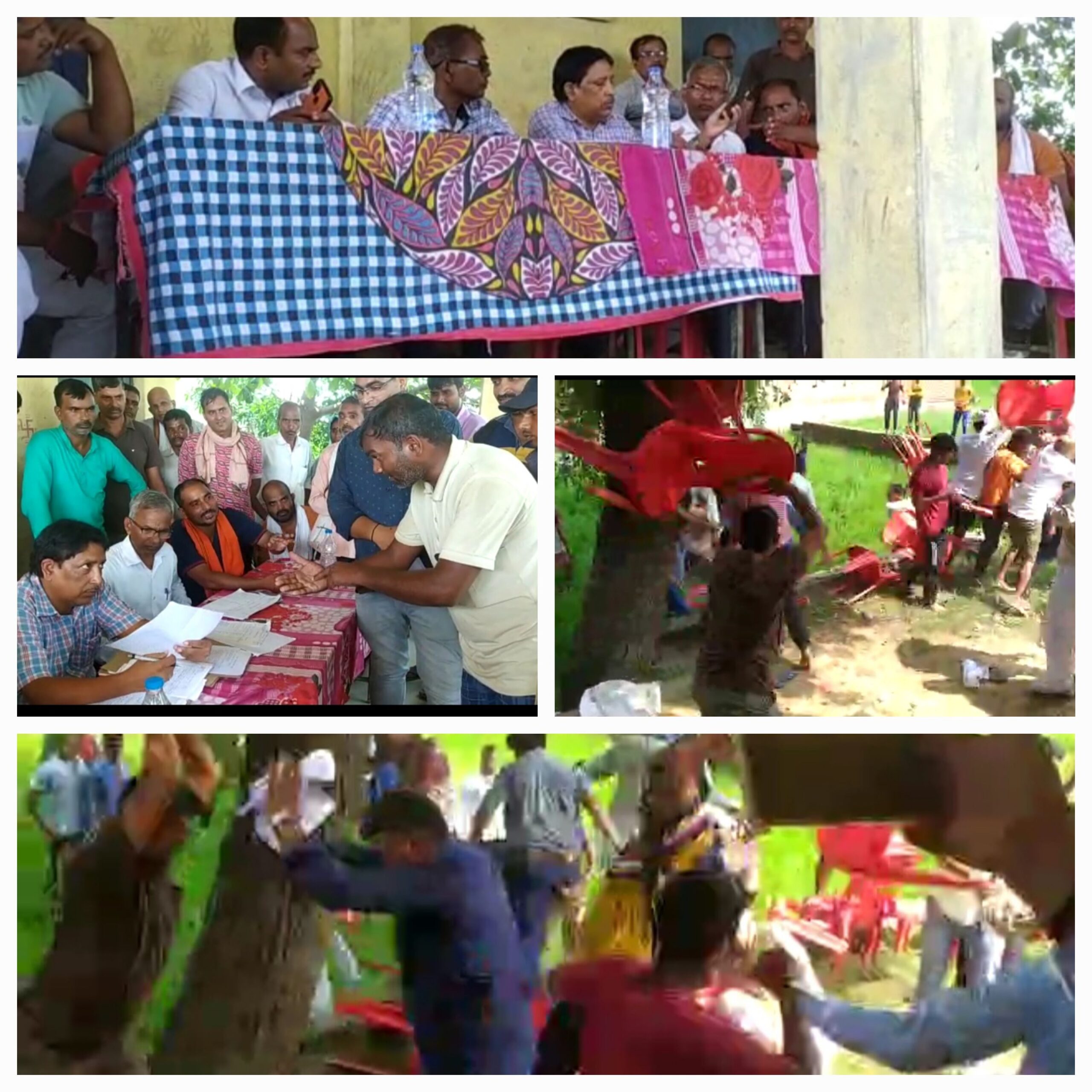 संदेश न्यूज़ 24 गोरखपुर खजनी थाना के लमती निवासी रवि तिवारी ने पूर्व प्रधान के घोटाले की शिकायत मुख्यमंत्री के पोर्टल पर किए थे उस पर जिलाधिकारी ने संज्ञान में लेते हुए एक कमेटी गठित किए जिसमें जिला कृषि अधिकारी देवेंद्र सिंह सिंचाई विभाग के लघु अभियंता काशी प्रसाद सेकेट्री पवन शुक्ला पंचायत भवन पर पहुंचकर अभी जांच शुरू किए थे कि अचानक शिकायतकर्ता रवि तिवारी व राजेश मिश्रा पूर्व प्रधान आपस में गाली गलौज करते मारपीट पर उतर गए और जमकर मारपीट होता देख अधिकारी अपनी डायरी समेटे और फरार हो गए गांव के लोगों ने पुलिस को सूचना दी मौके पर पुलिस पहुंच कर दोनों पक्षों को थाने पर ले आई दोनों पक्षों ने अपनी अपनी तहरीर दिए दोनों पक्ष के लोग चोटिल हुए हैं पुलिस मेडिकल जाच करवा कर कार्रवाई में जुट गई थाना प्रभारी इकरार अहमद ने बताया दोनों पक्षों की तहरीर आई है एक पक्ष के तरफ से तीन अभियुक्त हैं और दूसरे पक्ष से 7के विरूध मिला है मुकदमा लिख कर कार्रवाई की जाएगी