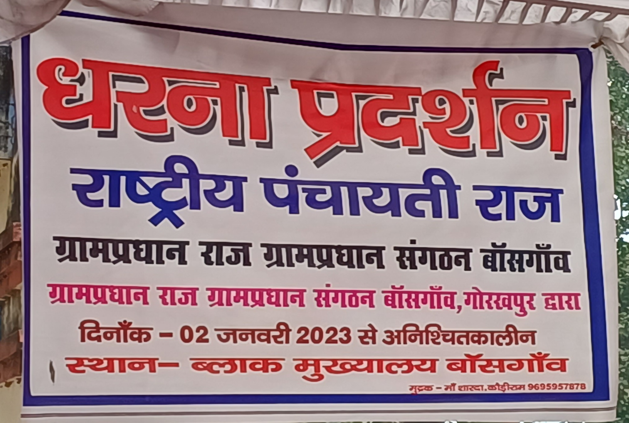 संदेश न्यूज़ 24गोरखपुर बांसगांव में चल रहे प्रधान संघ द्वारा धरना प्रदर्शन के आज दूसरे दिन भी जारी रहा । प्रधान संघ द्वारा अपनी मांगों को लेकर विकास खण्ड बांसगांव के गेट पर टेंट लगाकर अपनी मांगों को अनिश्चित काल तक धरना प्रदर्शन जारी है। रात को धरना दे रहे दो प्रधानों की तबीयत बिगड़ी जिनको आनन-फानन में एंबुलेंस द्वारा जिला अस्पताल भेजा गया।